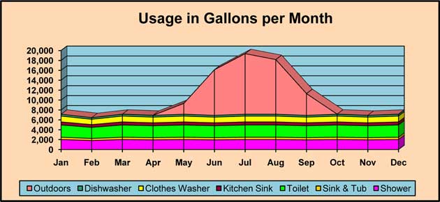 Your seasonal analysis indicates high summer usage. Outdoor uses, such as watering lawns, washing cars and filling swimming pools, are the typical reasons why you use more water during hot weather. The next page shows you how your usage compares to other similar households.